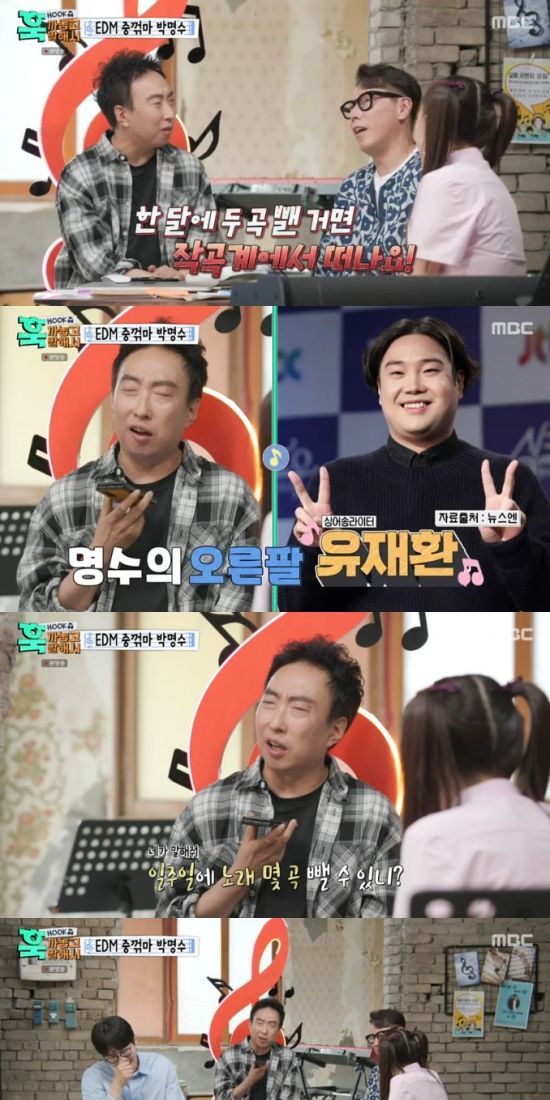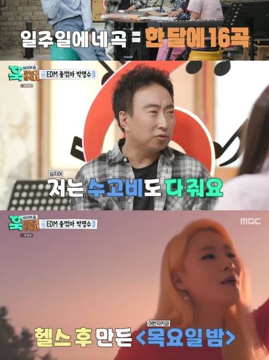 박명수는 "서론 필요 없다. 본론만 나오면 된다. 그래선 나는 댄스 뮤직 하는 거다. EDM은 훅이 가장 중요하다"라며 당부했다.