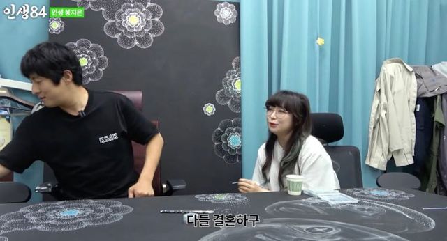 이어서 기안84와 봉지은 씨는 서로 작업을 하던 도중 결혼에 대한 이야기를 나누게 됐다. 기안84는 “내 생각에는 나중에 노인 모음 하면 지은 씨가 모임장 같은 걸 할 것 같다”고 말하자 봉지은 씨는 “사람이 없어서 못 간다. 내 주변에는 다 갔다. 나만 결혼 안 했어. 이제는 좀 나이가 들어서 혼자가 편하긴 한데 외롭다. 지금도 결혼은 하고 싶은데 만날 건덕지가 없다”라며 본인만 솔로임을 밝혔다.