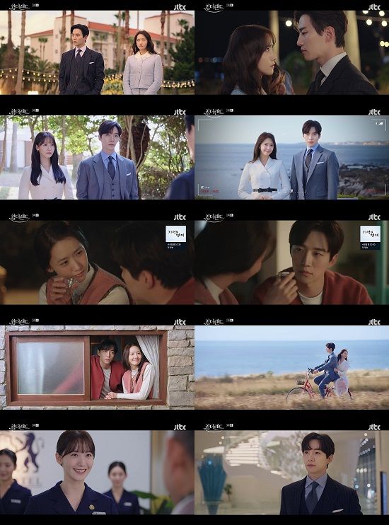 섬에서 처음 느낀 떨림은 킹호텔로 돌아온 이후에도 구원의 일상에 불쑥불쑥 끼어들어 묘한 설렘을 자아냈다. 연애 심리 테스트 광고 속 ‘그 사람 웃는 얼굴을 보면 나도 웃음이 난다’는 항목처럼 천사랑의 웃는 얼굴만 봐도 절로 미소를 띠는 것. 심리 테스트를 계기로 자신의 감정을 자각한 구원은 ‘한 발짝 더 용기 내보세요’라는 문구를 보고 용기를 내 천사랑에게 달려가 보는 이들의 심장을 두근거리게 만들었다.