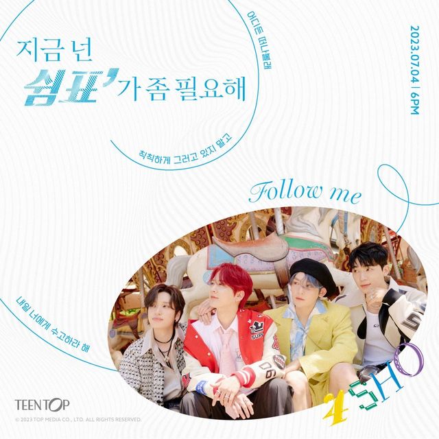 틴탑의 신보 'TEEN TOP [4SHO]'는 네 멤버가 팬들에게 전하는 '확실하고 당연한 약속'이라는 의미를 담고 있다. 이번 앨범을 통해 멤버들은 팬들에게 감사한 마음은 물론 변치 않을 틴탑을 약속할 예정이다. 7월 4일 오후 6시 발매.