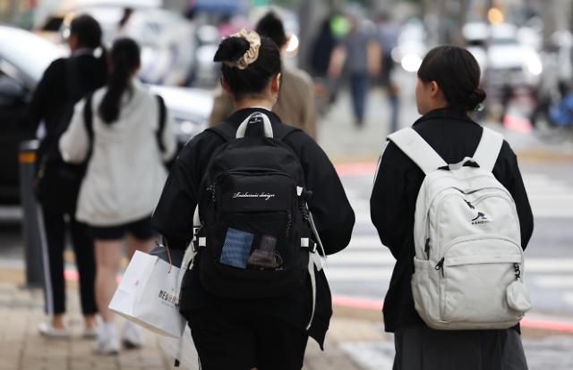 21日,首尔江南区大峙洞补习街上的学生们。【图片来源 韩联社】