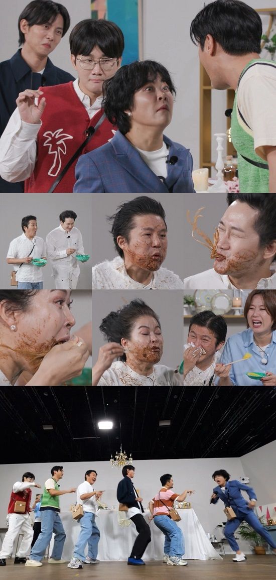 특히 조혜련과 5MC가 초대형 강풍기 앞에서 짜장면 먹기 게임을 펼치는 장면이 포착돼 시선을 강탈한다. 5MC 중 뿌리부터 개그맨인 조세호와 이용진은 강풍기 앞 짜장면 먹기로 진정한 희극인을 가린다고. ‘뼈그맨’ 이용진은 “언제까지 관찰 예능만 볼 건가!”라며 소신 발언을 작렬한다. 조세호는 시청자의 웃음 사수를 위해 명품 신발까지 벗어 던졌다.