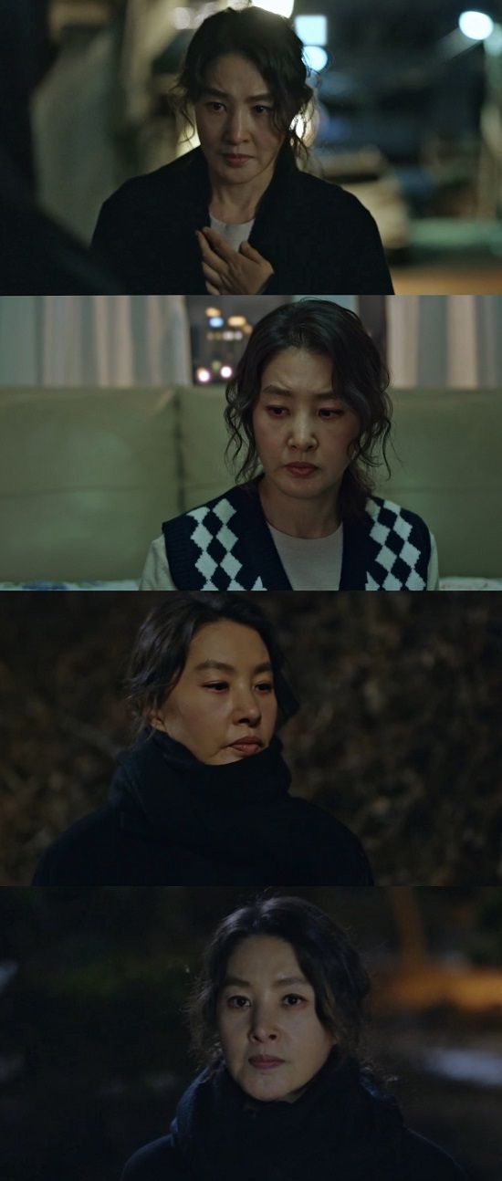 하지만 종전 모습과는 달리 죽은 남편에 관한 이야기를 할 때에는 한없이 차가운 눈빛과 단호한 말투로 딸 산영(김태리 분)과 시청자들을 얼게 만들었다.