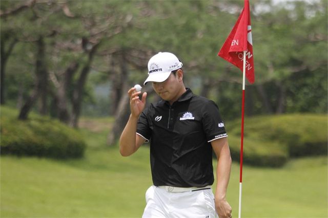 이정환이 25일 4라운드 5번 홀(파5) 그린에서 버디 퍼트를 성공하고 갤러리에게 인사하며 홀아웃하고 있다.
