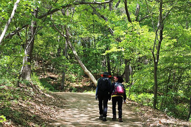 미륵산성 주차장 방향으로 내려오면서 인근 구룡마을을 지나치지 말자. 한강 이남 대나무 최대 군락지로, 5만㎡ 면적에 대나무숲이 빼곡하다. 왕대의 북방 한계선이기도 하다. 푹신한 흙길을 따라 걷다 보면 바람이 숲을 깨우고, 댓잎이 부대끼며 시원한 바람을 불러온다.
