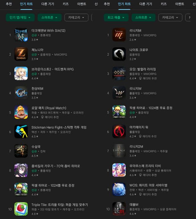 주간 순위는 모바일 게임 구글 플레이 기준 순위를 통해 1주간 어떤 게임들이 유저들의 주목을 받았는지 살펴보는 코너다.