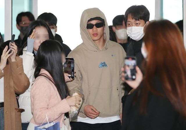 팬들에게 둘러싸인 채 출국하는 황희찬 / 뉴스1