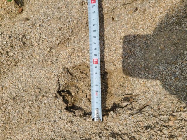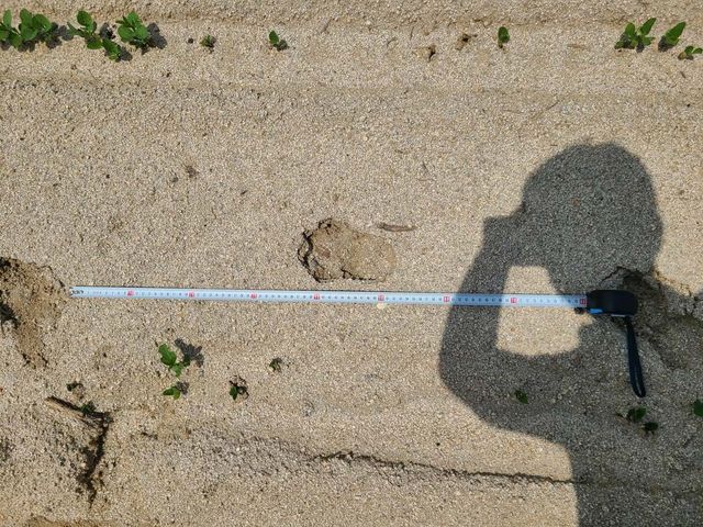 지난 24일 경북 영주시 한 밭에 표범으로 추정되는 발자국 여러 개가 발견됐다는 신고가 접수됐다. 사진은 영주시 환경보호과 관계자들이 현장 조사에서 촬영한 표범 추정체의 발자국. / 이하 사진=경북 영주시 제공