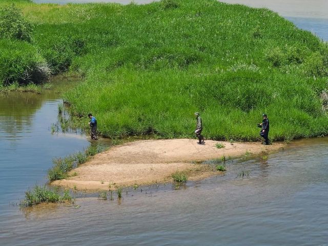 경북 영주시 무섬마을 내성천 일대서 악어를 수색 중인 영주시 환경보호과 관계자들의 모습. / 경북 영주시 제공