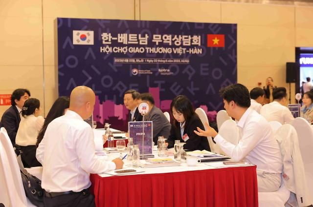 22日,在越南举办“韩越贸易伙伴关系博览会”,开展韩越商务洽谈及K-产业展示会【图片提供 韩联社】