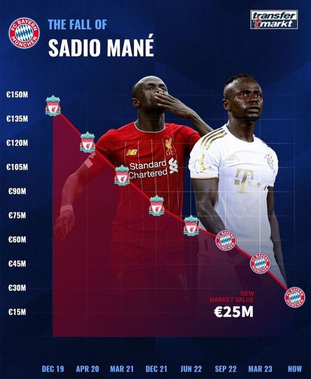 손흥민이 지난 시즌 매우 부진했다는 평에도 5,000만 유로(약 710억 원)를 유지한 것과 대비됐다. 마네는 독일 분데스리가 선수들 중에서 41위이며 뮌헨 안에선 15위다. 마네의 낮아진 명성을 보여준다.