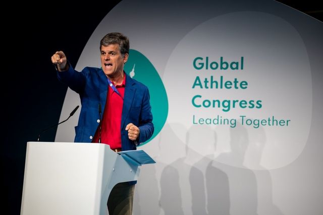 스페셜올림픽 국제본부(SOI) 티모시 슈라이버 회장이 글로벌 선수 의회(GAC) 개막식에서 연설하고 있다. 사진제공 | SOI