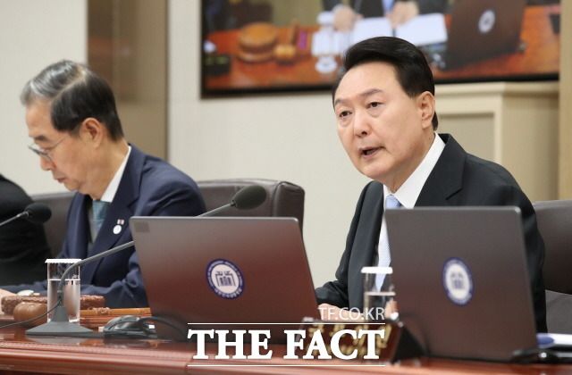 대통령실 관계자는 26일 노란봉투법에 대해 "조금 더 심각하게 볼 필요가 있다"고 말했다. 지난 13일 서울 용산 대통령실 청사에서 열린 국무회의를 주재하고 있는 윤 대통령. /뉴시스