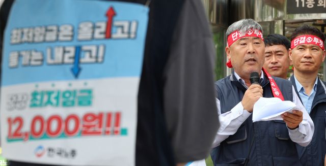 김동명 한국노총 위원장이 최저임금 인상과 공석이 된 최저임금위원회 노동자위원의 조속한 위촉을 촉구하며 천막농성 투쟁에 돌입했다.