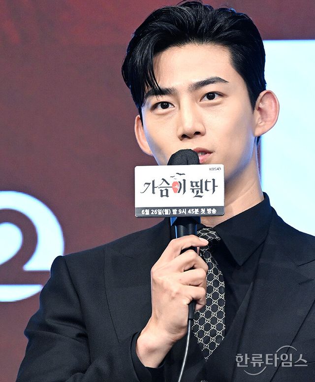 배우 옥택연이 26일 오후 서울 구로구 신도림동 더세인트에서 열린 KBS 2TV 새 월화드라마 '가슴이 뛴다' 제작발표회에 참석해 취재진의 질문에 답하고 있다.