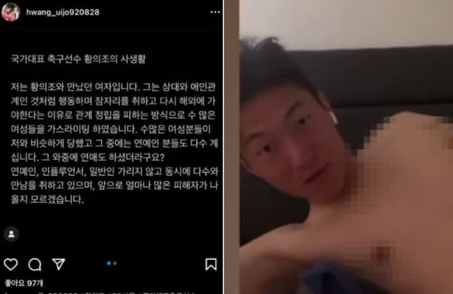 지난 6월 25일 한 인스타그램 계정에는 황의조의 사생활이 담긴 충격적인 영상과 글이 유출됐습니다.