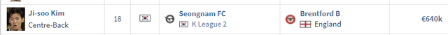 브렌트퍼드는 26일(한국시간) 홈페이지를 통해 "K리그2 성남FC에서 온 김지수가 계약 기간 4년에 옵션 1년을 포함한 내용의 계약서에 서명했다"라며 "이번 주 프리시즌을 시작하는 B팀에 합류할 예정"이라고 발표했다.