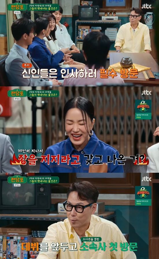 27일 방송된 JTBC '짠당포'에는 드라마 '닥터 차정숙'의 주연배우 4인방 엄정화, 김병철, 명세빈, 민우혁이 게스트로 출연해 추억이 있는 물건에 대해 이야기했다.