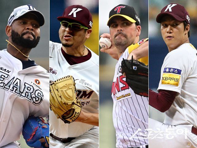두산 알칸타라, 키움 후라도, LG 플럿코, 키움 안우진(왼쪽부터). 스포츠동아DB