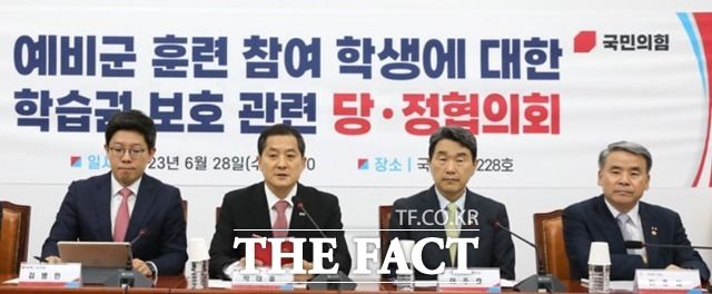 [더팩트ㅣ국회=허주열 기자] 국민의힘과 정부가 28일 예비군 훈련을 받는 대학생들이 출결 등 학습권에 불이익을 받지 않도록 하는 내용의 '고등교육법 시행령'을 만들기로 했다.