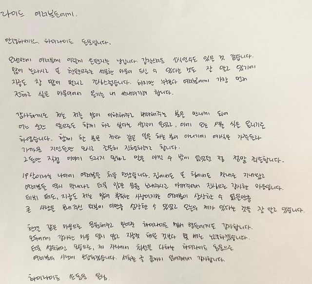 오랜만에 여러분께 이렇게 손편지를 남깁니다. 갑작스러운 소식일 수도 있을 것 같습니다. 많이 놀라시고 또 한편으로는 서운한 마음이 드실 수 있다는 것도 잘 알고 있기에 지금도 참 많이 떨리고 조심스럽습니다. 하지만 누구보다 여러분에게 가장 먼저 전하고 싶은 마음이어서 용기를 내 써내려가려 합니다.