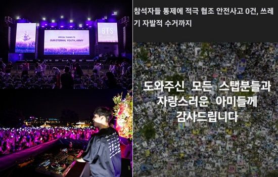 이날 약 40만 명이 몰린 것으로 알려진 'BTS 페스타'는 모든 행사가 끝난 이후 아미들이 자발적으로 쓰레기를 줍고 현장을 치우는 모습을 보였다. 이를 통해 아미들의 성숙한 시민 의식과 팬 문화가 돋보였다는 평을 받으며 훈훈하게 마무리됐다.