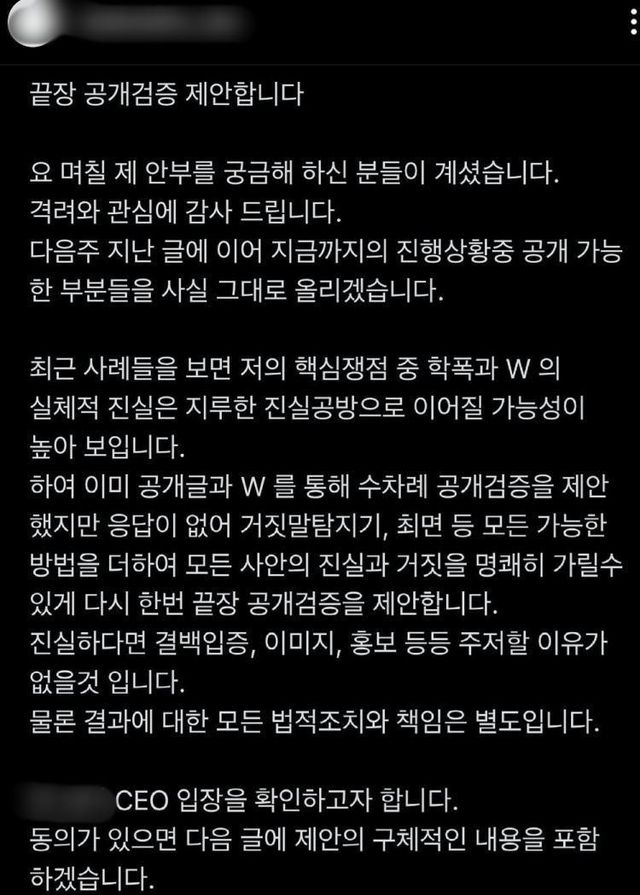 조병규에게 공개 검증까지 제안하며 학교 폭력을 당했다고 주장한 네 번째 폭로자