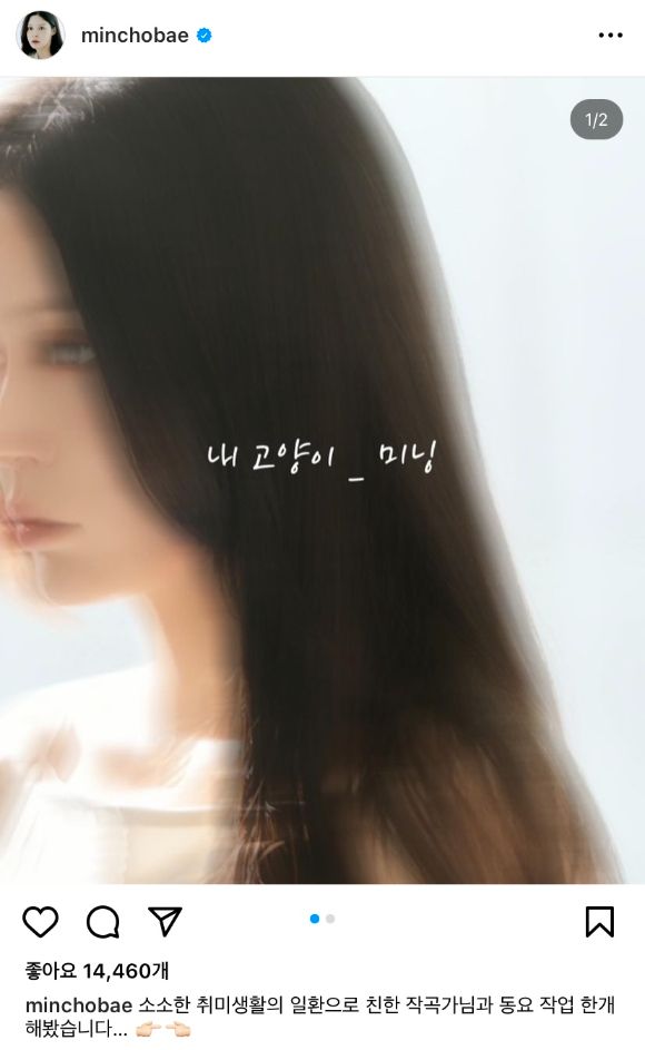 조민은 지난 28일 자신의 인스타그램에 "소소한 취미 생활의 일환으로 친한 작곡가님과 동요 작업 한 개 해봤습니다"라며 앨범 커버 이미지를 게재했다. 그가 발매한 음원은 지난 21일 국내 음원 사이트에 '미닝'이라는 예명으로 공개된 '내 고양이(my cat)'이다.
