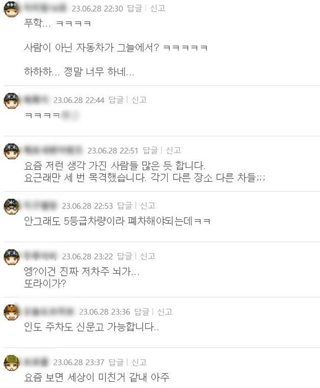 무개념 주차를 본 누리꾼들의 반응.