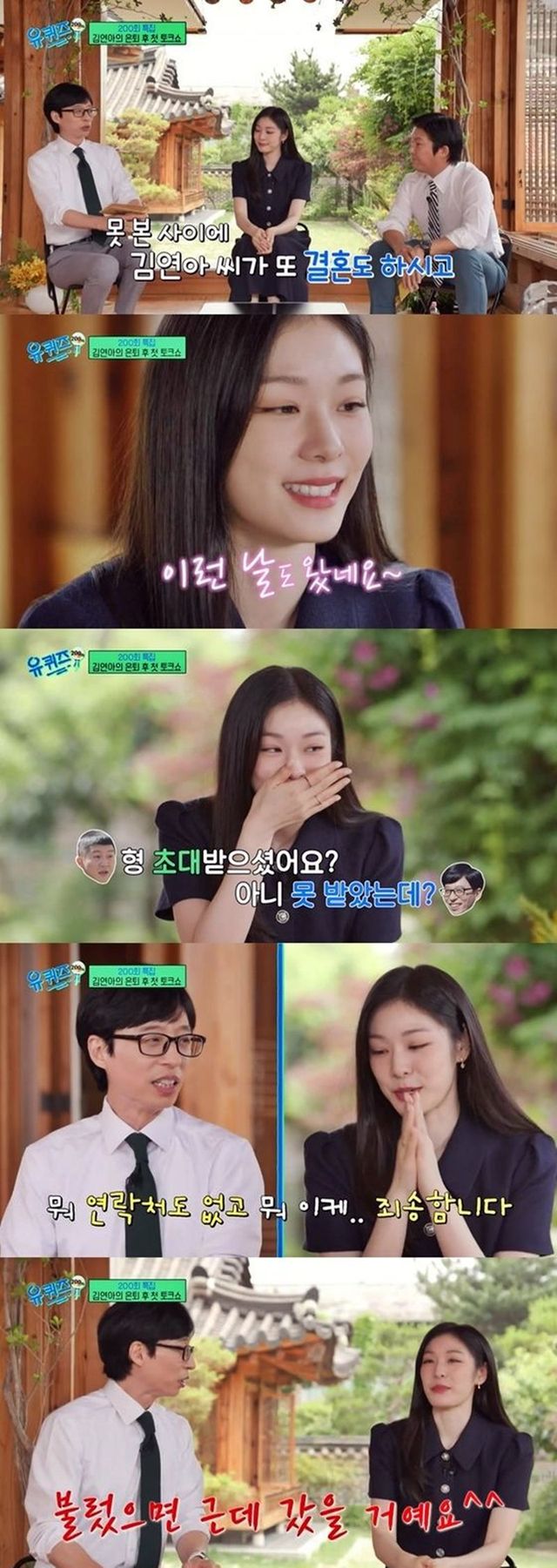 '국민 MC' 유재석이 '피겨 여왕' 김연아의 결혼에 초대받지 못한 것을 아쉬워했다.