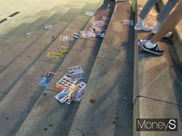 문제는 공원 여기저기에 버려진 쓰레기였다. 잔디밭에는 돗자리 사이로 쓰레기가 뒹굴고 있었고 한강공원 입구에서 나눠주는 전단지는 여기저기 버려져 시민들의 발에 밟히고 찢겨졌다.