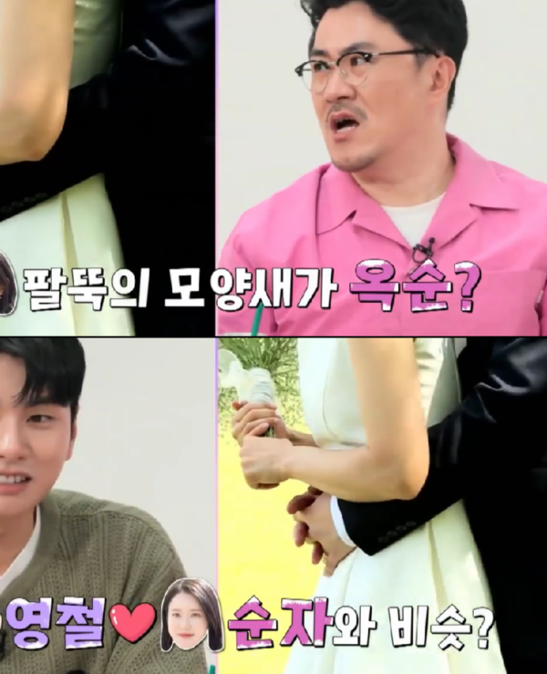 순자에게 불꽃 직진하는 영수와, 영호와 가까워지는 영숙을 보고 방황하는 영철의 모습 등이 공개되며 한 회가 마무리 된 가운데, 마지막으로 3MC는 제작진이 공개한 15기 결혼 커플의 웨딩 촬영 영상을 보고는 이들이 누구인지 추측해보는 시간을 가졌다. 이때 신부의 슬림한 몸매에 주목한 데프콘은 “저 팔은 옥순인데”라고 외쳤다. 이이경은 “남자가 키가 크다”며 “혹시 영철, 순자?”라고 촉을 세웠다. 송해나는 “혼란스럽다”라며 두통을 호소했다.