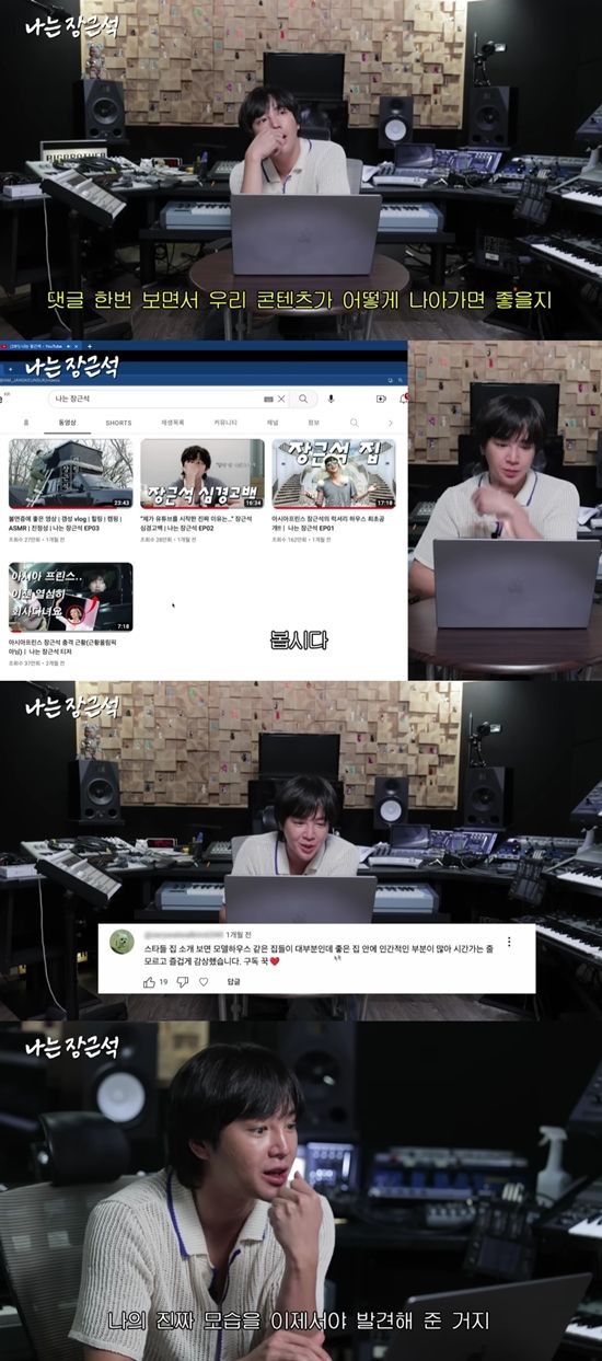 이날 공개된 영상에서 장근석은 유튜브 댓글을 읽는 시간을 가졌다. 늘지 않는 구독자 수에 대해 장근석은 "처음부터 분명히 얘기했다. 구독하지 말라고. 그거에 대한 노예가 되고 싶지 않다. 나의 일기장, 보물들 같은 영상이 되길 바란다"라면서도 "조회수 늘어서 광고 들어오면 얼마나 좋겠다"라고 말해 웃음을 자아냈다.