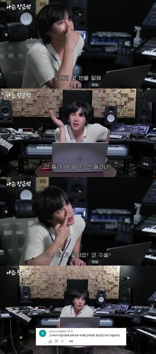다른 영상에는 '코 이상. 뭐 넣지 마라. 좀 낮은 게 매력'이라는 성형수술을 하지 말라는 댓글이 달렸다. 장근석은 "도대체 몇 번을 말하냐. 안 했다고. 내 말이 안 들리냐"라며 코를 손으로 거침없이 만졌다.