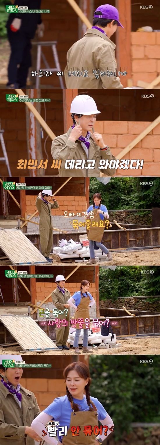 두 사람은 아들이 오기 전, 먼저 공사를 시작했다. 공사에 앞서 하희라는 "앞치마 끈 좀 묶어달라"고 부탁했고, 최수종은 "끈을 묶어? 사랑의 밧줄로 꽁꽁 묶어?"라고 능글 맞게 말했다.