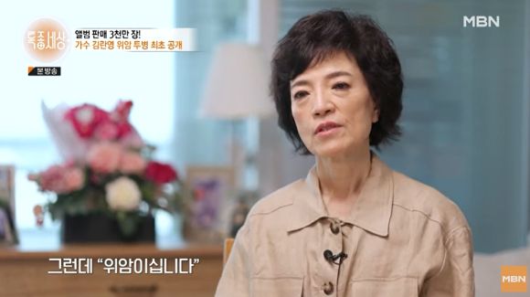 김란영은 "3월부터 몸이 안 좋더라. 종합 검진을 받았는데 검사하고 빨리 오라고 하더라. 위궤양이나 염증으로 생각했는데 위암이라고 하더라"라며 "큰 병원으로 가라는 말을 듣고 일어서서 오는데 그때부터 막 눈물이 났다"고 회상했다.