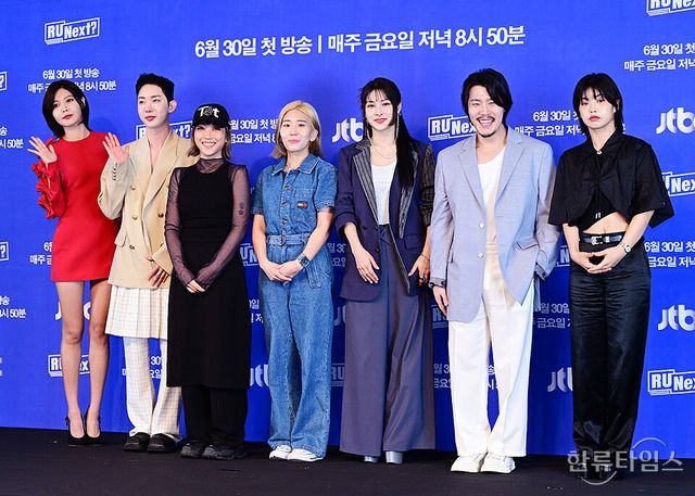 가수 최수영, 조권, 이현, 박규리, 아이키, 이예지 PD, 김선형 PD가 30일 오전 서울 상암동 스탠포드호텔에서 열린 JTBC ‘알유넥스트’(R U Next?) 제작발표회에 참석해 포토타임을 갖고 있다.