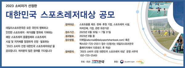 ■ 참여 문의: ‘2023 소비자 선정 대한민국 스포츠레저 대상’ 운영 사무국(02-725-2540)