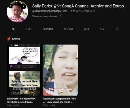 ‘송아’ 영상을 다시 올린 채널명은 ‘Sally Parks 송아 SongA Channel Archive and Extras’로, 채널 개설일은 6월 17일로 확인된다. 채널 메인화면에 송아의 사진을 그대로 사용하는 등 기존 송아 채널을 그대로 옮긴 듯한 모습이다. 채널 소개란에는 ‘본인은 11세로 초등학교 5학년에 재학 중이며 평양은 매우 아름다운 도시’라고 적었다.