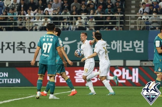 서울도 물러서지 않았다. 전반 24분 일류첸코가 만회골을 넣었고, 후반 5분 나상호가 레이저급 슈팅으로 골망을 흔들어 스코어의 균형을 맞췄다. 승부를 가른 건 집중력이었다. 후반 43분 김인균이 좌측면을 허문 뒤 올린 크로스를 마사가 마무리하며 3-2로 대전이 승리했다.