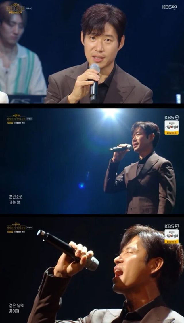 유준상은 "사실은 저희 큰 아이가 오는 8월에 입대한다. 내 얼굴을 봐서는 믿기지 않겠지만, 아들이 세월이 흘러 군대에 가게 된다. 이 자리에서 이 노래를 부르고 싶어 선곡했다"고 말했다.