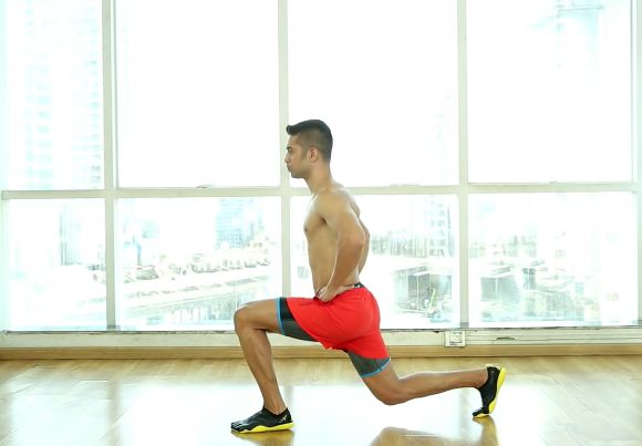 스쿼트와 비슷한 런지도 대둔근 단련에 효과적이다. 스쿼트와 마찬가지로 상체를 곧게 편 상태에서 오른쪽 다리를 앞으로 내디뎌 양쪽 무릎을 구부린다. 이때 앞으로 내딛는 다리는 ㄱ자 모양, 뒤쪽에 위치한 다리는 ㄴ자 모양이 된다. 자세 유지 후 다리의 위치를 바꿔 운동하며 정해진 개수를 반복하면 된다. 런지를 할 때는 상체가 지나치게 앞쪽으로 딸려 나가지 않도록 해야 하며 내디딘 무릎이 발보다 더 튀어나오면 안 된다.