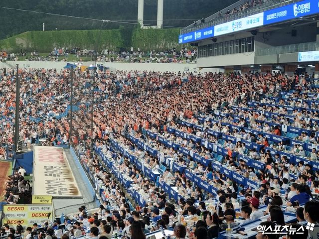 이날 삼성 구단이 집계한 입장 관중 수는 총 18,151명. 홈 팬들이 관중석 곳곳을 채운 가운데서도 1루 원정석은 오랜지색 물결로 뒤덮였다. 8연승 도전 그리고 팀의 상승세를 직접 눈으로 확인하고 싶은 한화 팬들이 전국에서 몰려들어 라이온즈파크를 방문, 선수들에게 응원을 보냈다. 이날 중계에선 대전은 물론 동두천 등 먼 곳에서도 한화를 지지하기 위해 찾은 팬들이 눈에 띄었다.