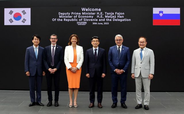 탄야 파욘 슬로베니아 부총리는 마트야쉬 한 경제·관광·체육부장관과 록 캐플 기업진흥청 대표, 예르네이 뮐러 주한 슬로베니아 대사 등과 함께 했으며, 현대차그룹에서는 기아 송호성 사장과 현대차그룹 김용화 CTO(최고기술책임자) 등이 사절단을 맞았다.