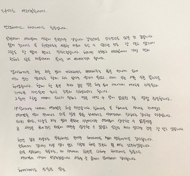 이와 함께 손동운은 "19살이라는 나이에 여러분을 처음 만났다"라며 "집에서도 또 팀에서도 막내로 지내왔고 여러분들 역시 막내라고 더욱 많은 응원 보내주시고 아껴주셔서 진심으로 감사한 마음"이라고 팬들을 향한 고마움을 전했다. 또한 "한결 같은 마음으로 응원해주고 믿어준 하이라이트 멤버 형들에게도 감사하다. 지금껏 해온 것보다 몇 배로 노력, 더욱 성숙해진 모습으로 보답하겠다"라는 각오를 다졌다.