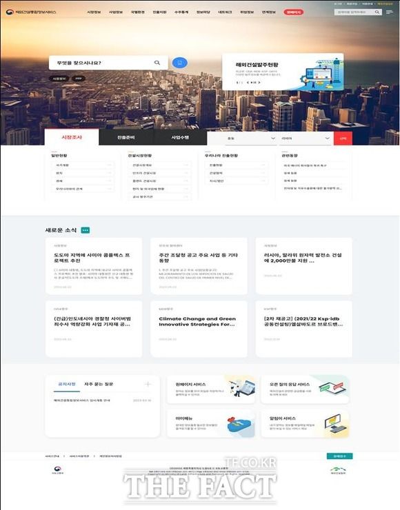 [더팩트ㅣ최지혜 기자] 국토교통부와 해외건설협회가 3일부터 해외건설통합정보서비스(OCIS)를 본격 개시해 해외건설의 모든 정보를 한 눈에 볼 수 있게 된다.