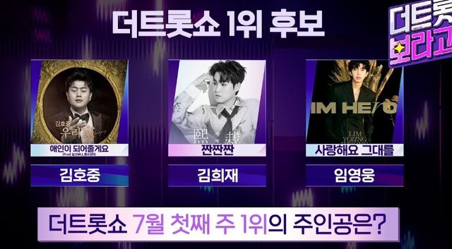 SBS Fil과 SBS M '더 트롯쇼'는 3일 저녁 8시에 생방송으로 1위 자리를 두고 김호중과 김희재, 임영웅이 1위 자리를 두고 경합을 펼친다.