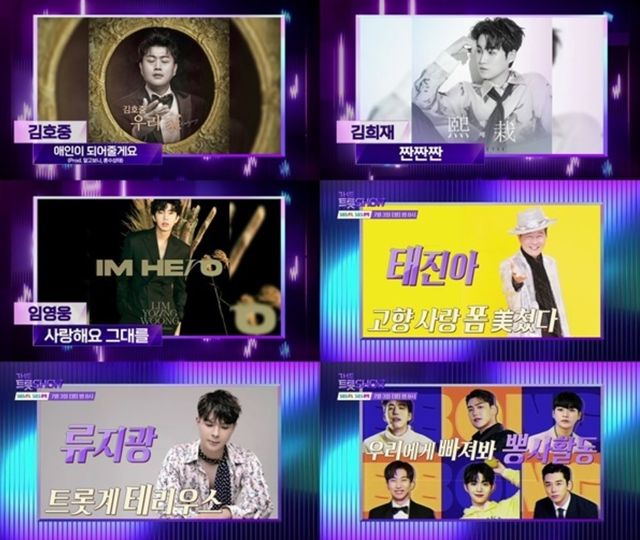 1위 후보곡은 김호중의 파워풀한 성량이 돋보이는 곡 '애인이 되어줄게요'와 중독성 있는 멜로디의 곡 김희재의 '짠짠짠', 임영웅의 헤어 나올 수 없는 목소리가 더해진 '사랑해요 그대를'이 선정됐다.