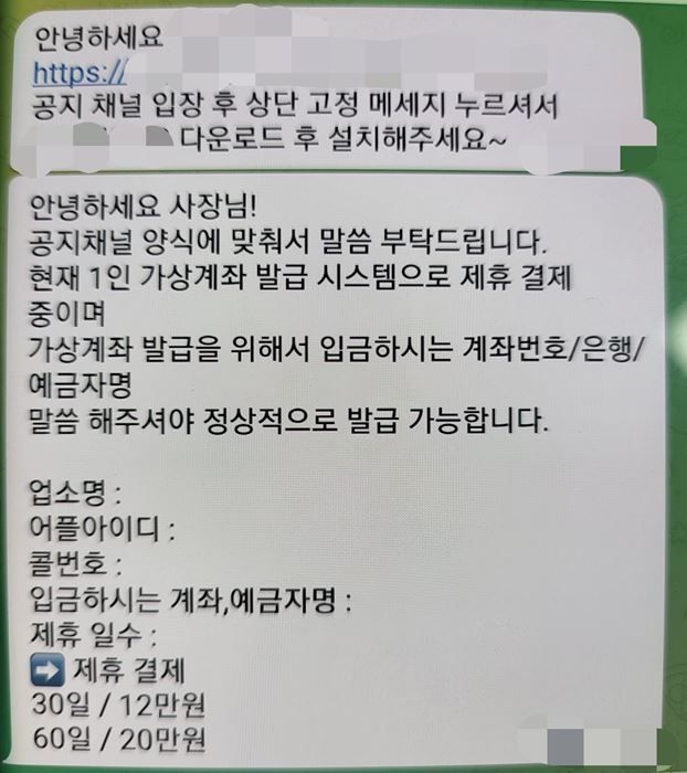등록 양식을 완성하면 앱을 설치할 수 있는 링크와 함께 계좌번호가 전송된다. 결제가 완료되면 아이디와 비밀번호가 생성되며, 앱을 사용할 수 있게 된다. 이용비는 30일에 12만원, 60일에 20만원이다. 업주가 앱 설치를 위해 성매매 광고 사이트에 가입한 비용 12만원을 포함하면 최소 24만원을 지출한 셈이다.