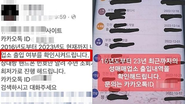하루 15건의 무료 검색이 가능하며, 이후 3만원의 추가 비용이 발생한다. 문제는 검색 대상자가 남성에 국한되는 것만이 아니다. 업소에 취업을 문의한 여성들의 번호도 공유된다는 점이다. 호기심에 연락한 무고한 사람까지 포함된다.